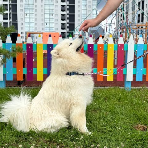 Мы поощряем лакомством, игрой или похвалой правильные действия собаки. Так питомец начинает сам предлагать нужное поведение, ведь он понимает — это выгодно! Собака учится с удовольствием и активно участвует в процессе.